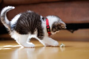 安全のためにケージでお留守番をさせているご家庭も多いでしょう。私たちの訪問は、まさにその拘束から解放される「最高のリフレッシュタイム」です。 お部屋の安全(誤飲のリスクなど)をプロの目で再確認した上でケージから出し、身体を目一杯動かして遊びます。 「家族」以外の人間が初めておうちにやってきた時、子猫ちゃんが見せる「えっ、誰!?お母さんじゃない!」というあの驚いたような、まん丸な目。 そこから、私たちの優しい声かけと遊びに誘われ、数分後には「このお姉さん、楽しいかも……!」とゴロゴロ喉を鳴らし始める。そんな「心の壁が溶けていく瞬間」を、私たちは大切にしています。