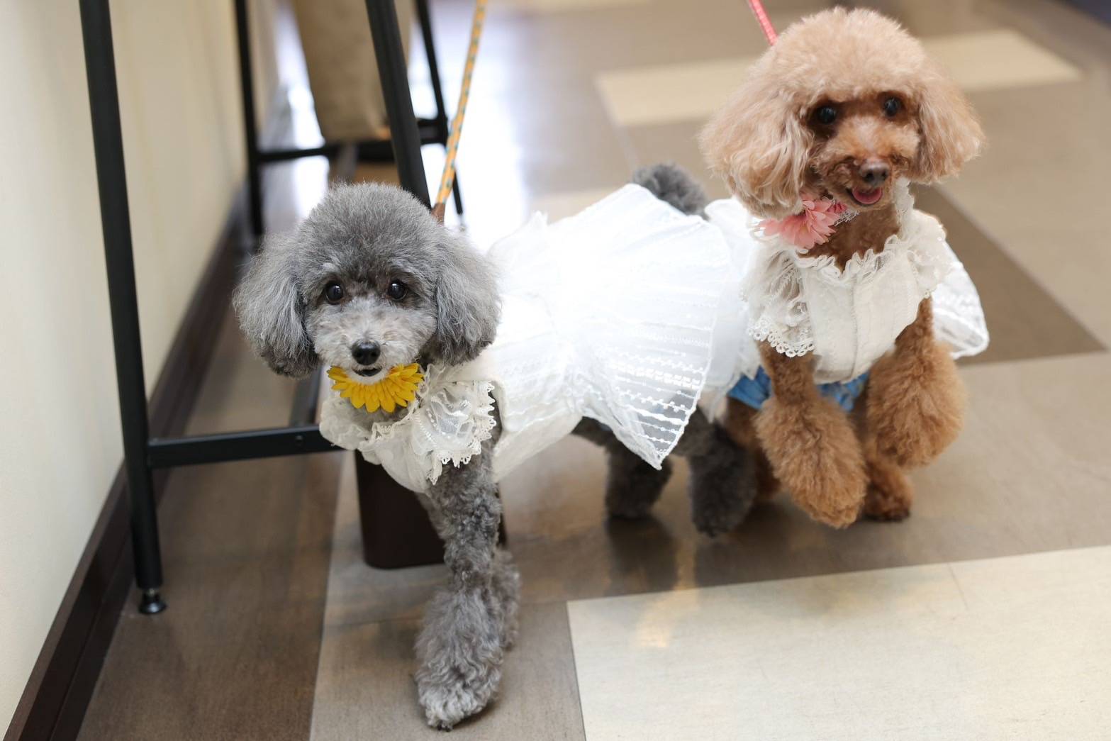 大切な家族も最高の笑顔でその日を迎えられるように、プロとして全面的にサポートをお約束します。ご自宅から式場までの送迎も、慣れない場所でのお留守番も、すべて私たちにお任せください。専任シッターが、いつものお散歩やご飯、おトイレなど、大切な日常のケアを責任を持って行います。